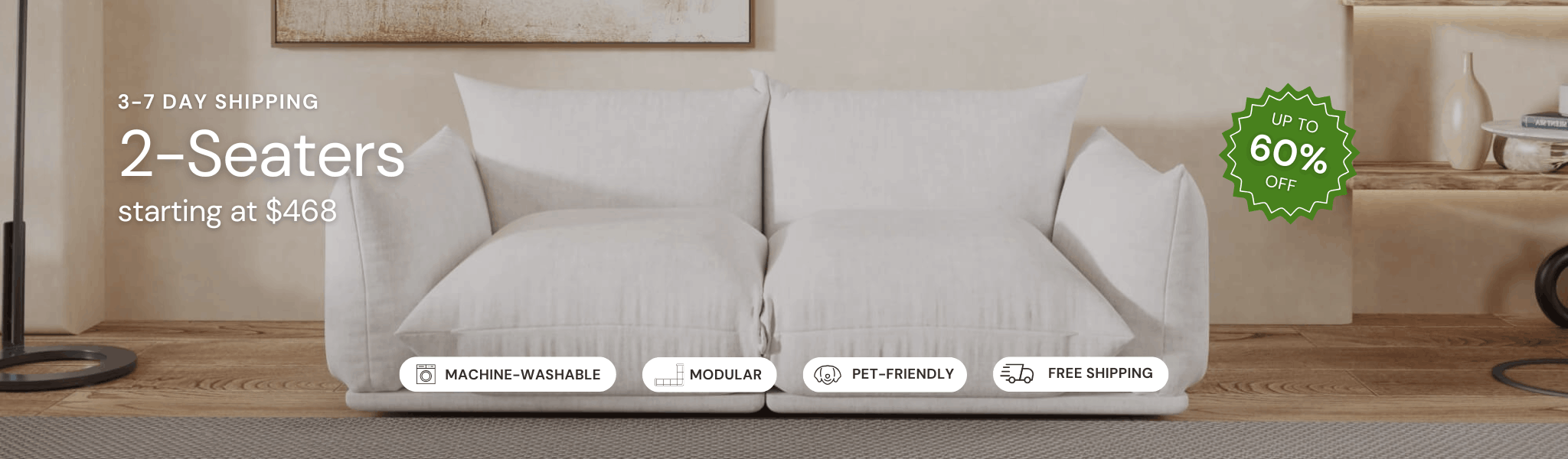 Perfect for pairs! Our 2 seaters collection is all about shared moments. Snuggle up on a classic loveseat or get creative with modular sofas you can mix, match, and rearrange. Whether it's for heart-to-heart chats, movie nights, or flexible lounging, these cozy two-seaters are your ticket to double the comfort and twice the style. Find your perfect partner sofa and make any corner a destination for two.