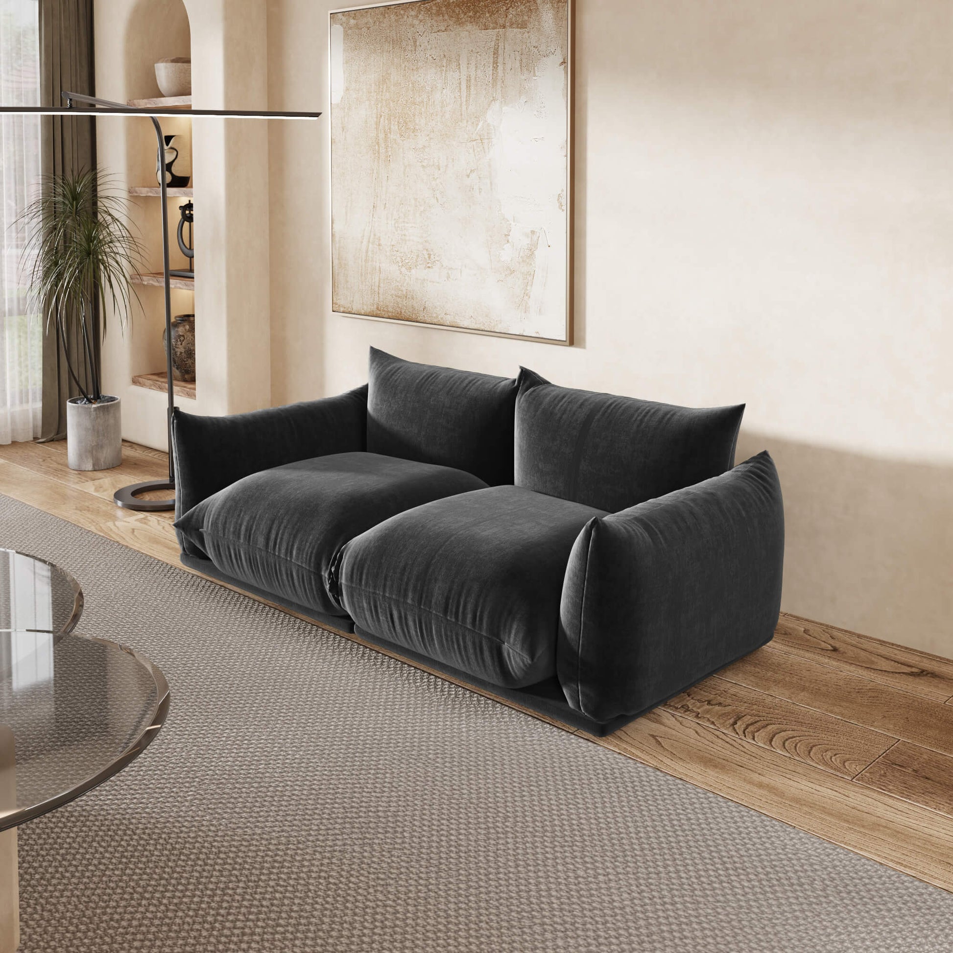 Crafted with a solid wood foundation and high-density cushioning, it delivers balanced, full-body support for daily relaxation. The soft chenille fabric adds a tactile richness that elevates your space while remaining durable for everyday use. Elegant, flexible, and endlessly comfortable — this modular loveseat makes luxury living feel effortless.