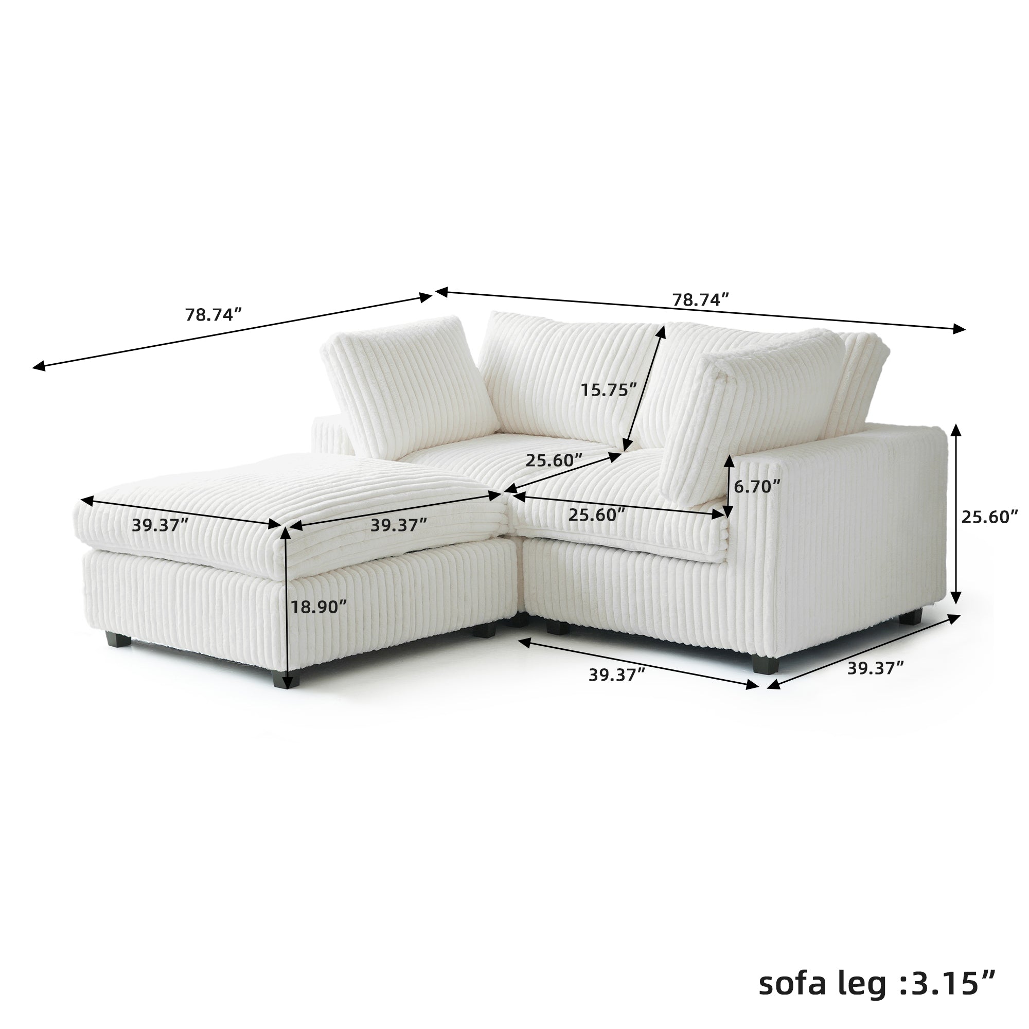 The 2-Seat Modular Loveseat with Ottoman pairs plush comfort with adaptable design. Upholstered in ultra-soft faux rabbit fur, it creates a cozy, cloud-like retreat perfect for relaxing, reading, or lounging. The matching ottoman adds versatility — use it as a footrest, extra seat, or to extend your layout into a chaise-style configuration.