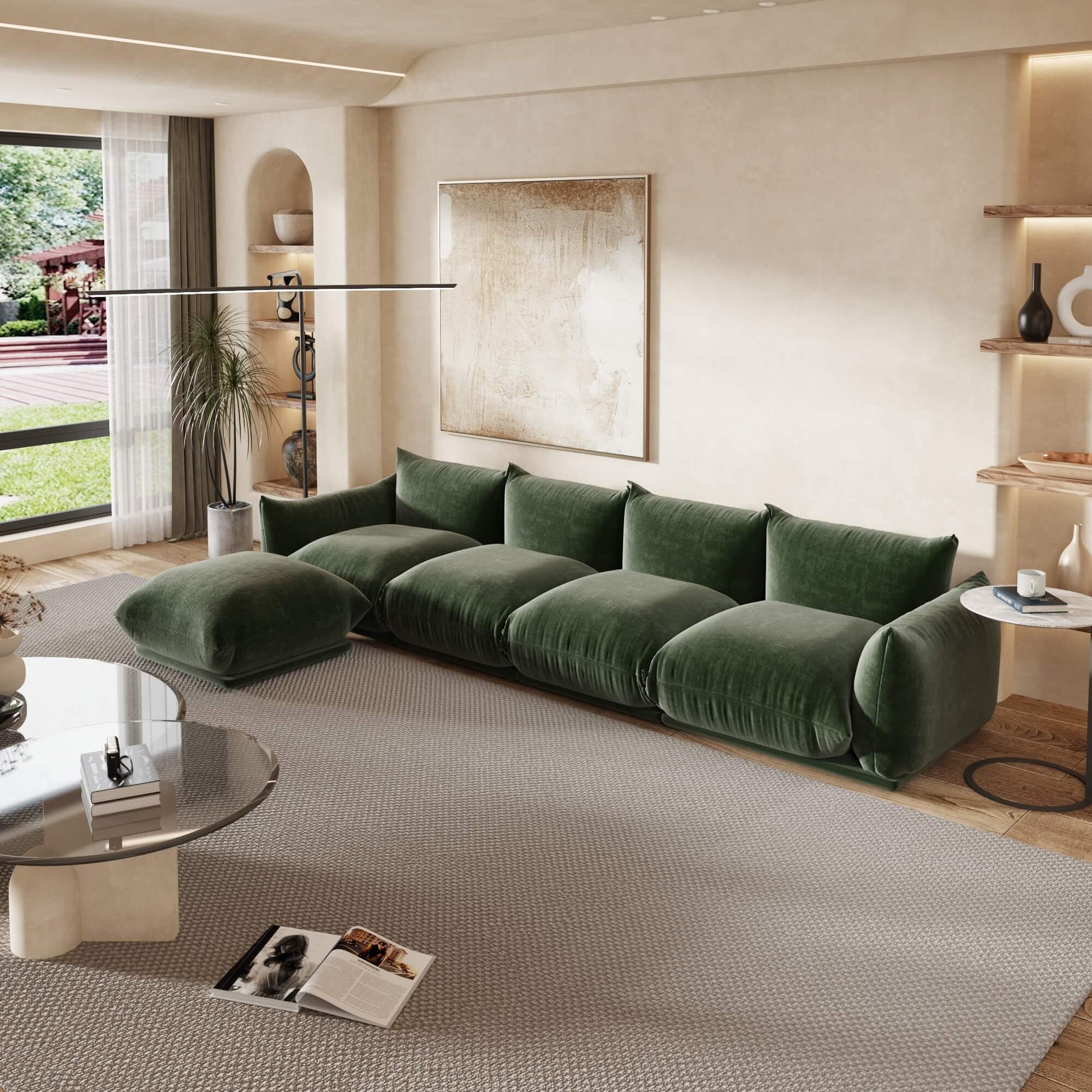 The Verona 4-Seat Chenille Modular Sofa combines low, modern elegance with deep, irresistible comfort. Designed to anchor any living room, its wide, plush cushions and chenille texture bring warmth and style to open spaces. The flexible modular design adapts to your lifestyle, allowing you to rearrange or expand with ease.