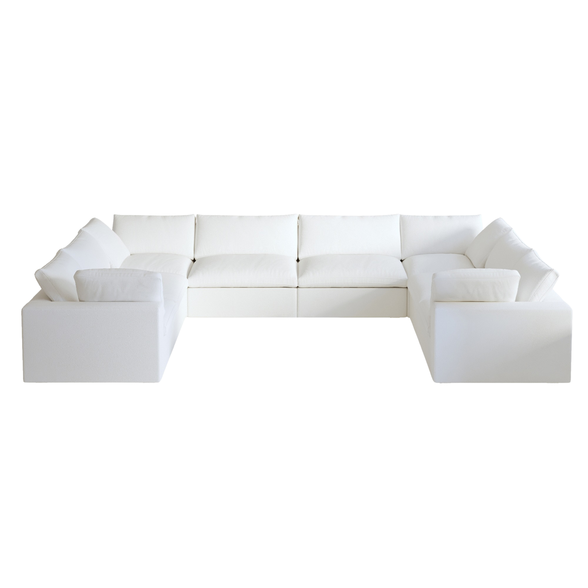 Elevate your living space with the Nimbus 8-Seat Modular U-Sectional—a statement piece that blends timeless style with modern comfort. Designed for both everyday living and grand entertaining, this expansive U-shaped sectional offers generous seating for up to eight, complete with a spacious chaise and coordinating ottoman. Upholstered in a premium linen-blend fabric that’s as durable as it is elegant, it’s easy to maintain and built to last. Plush cushions provide inviting comfort, while the modular design allows you to customize the arrangement to suit your home. Perfect for large gatherings, family movie nights, or simply stretching out in luxury, the Nimbus 8-Seat U-Sectional transforms your space into the ultimate haven of style and relaxation.