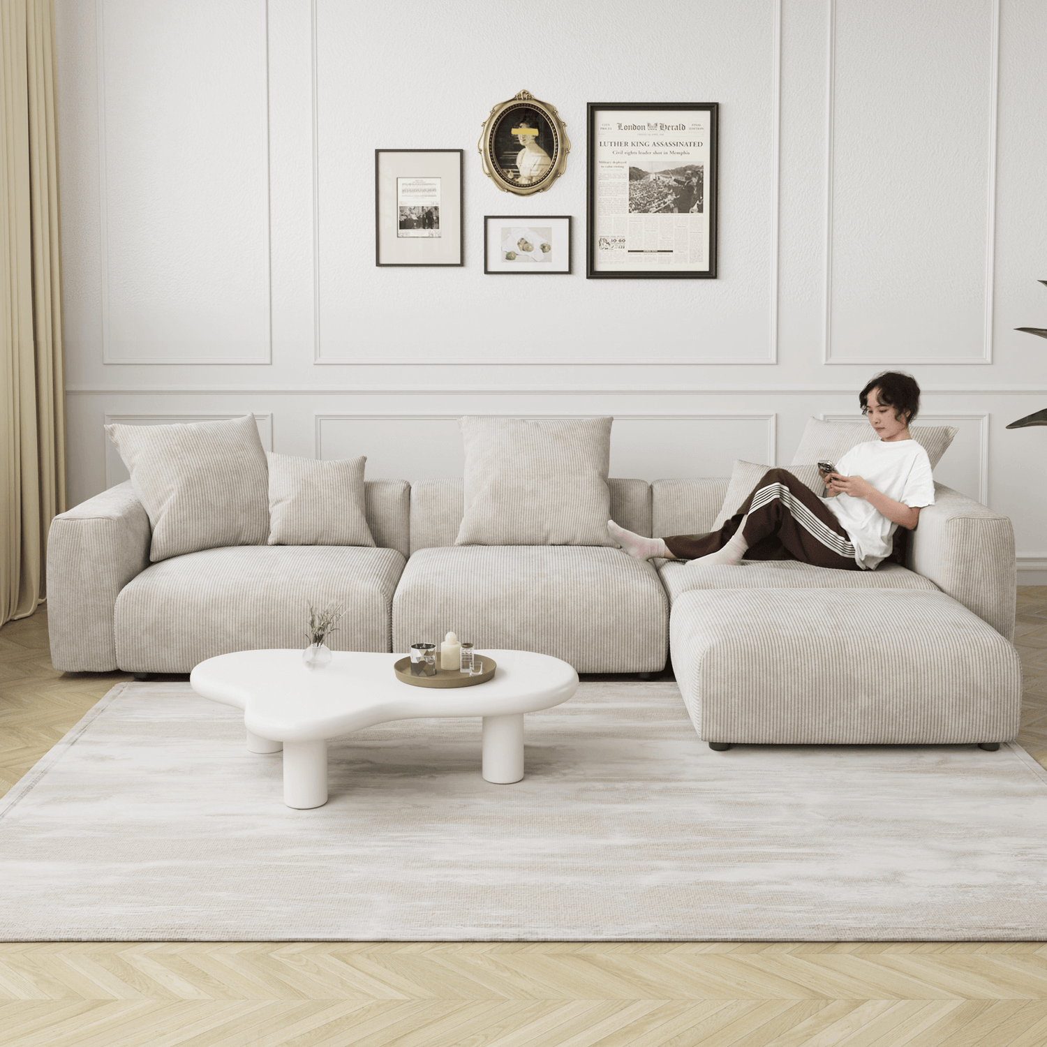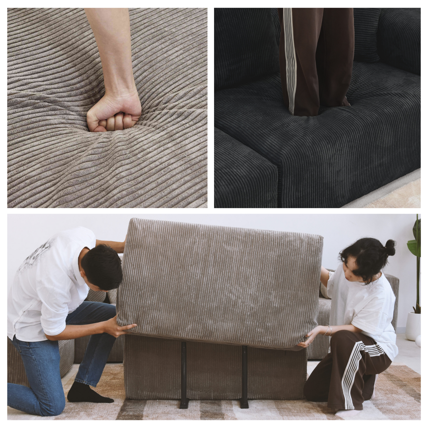 Perfect for: Small to mid-size living rooms, family-friendly homes, and anyone seeking a cozy, customizable sectional in soft corduroy that balances style and everyday practicality.