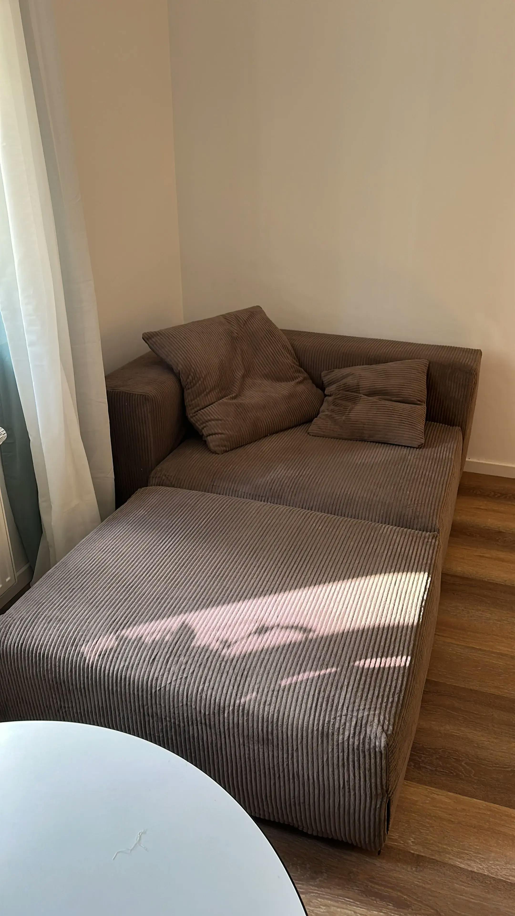 This oversized brown 2-seater sectional with ottoman is engineered for relaxed everyday use and practical living. The sectional includes replaceable covers for easy maintenance and durable, wrinkle-resistant upholstery that retains its shape over time. Soft foam seating and rounded edges offer comfortable support and a child-friendly surface for seating or play. Hidden legs subtly elevate the sectional, reducing floor contact and minimizing dust and dirt accumulation underneath, while maintaining a clean, low silhouette. The attached ottoman expands the seating area and allows for flexible lounging and layout options. Functional, comfortable, and designed to last, this sectional pairs well with modern and transitional interiors.